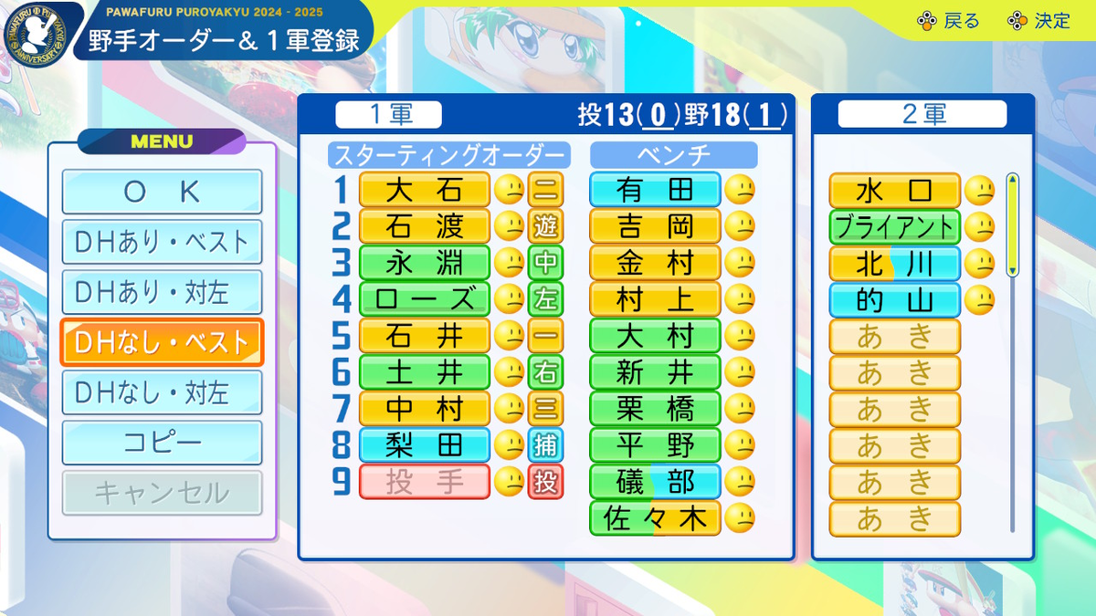 西本監督: 10100 50140 28947(クマオ様作成)優勝回数 2回